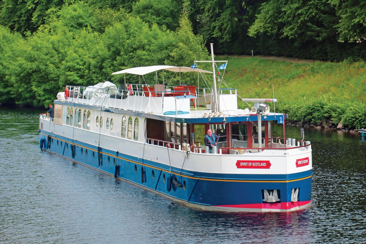 The Spirit of Scotland combines classic elegance with modern comfort. Well-appointed cabins provide a peaceful retreat, while the inviting salon and open-air deck create perfect spaces to unwind, socialize, or enjoy the ever-changing Highland scenery. Onboard dining features freshly prepared Scottish cuisine, complemented by fine local whiskies and wines, offering a true taste of Scotland.