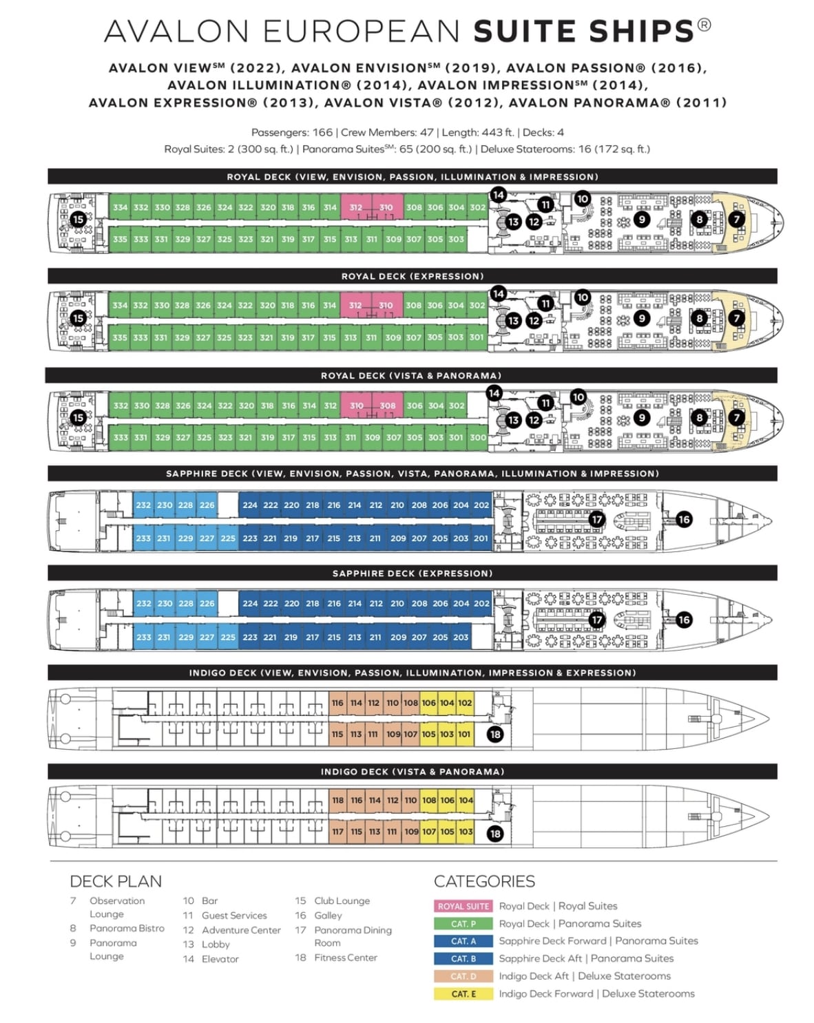 The Avalon Vista's two full decks of suites feature two full decks of Panorama Suites with wall-to-wall, floor-to-ceiling panoramic windows that transform the living space into river cruising's only Open-Air Balcony. Enjoy seamless views from your Comfort Collection bed that faces the window. With 200 square feet, Panorama Suites are more than 30% larger than the industry standard, affording you the space to entertain in your private sitting area or just relax and enjoy the passing vistas. Onboard amenities include a Fitness Center, complimentary computer use in public areas and complimentary Starlink Wi-Fi access, and a spacious Sky Deck with premium lounge chairs, shade system, whirlpool, and the delightful Sky Bistro. Sweeping views are yours to enjoy on the Avalon Vista!