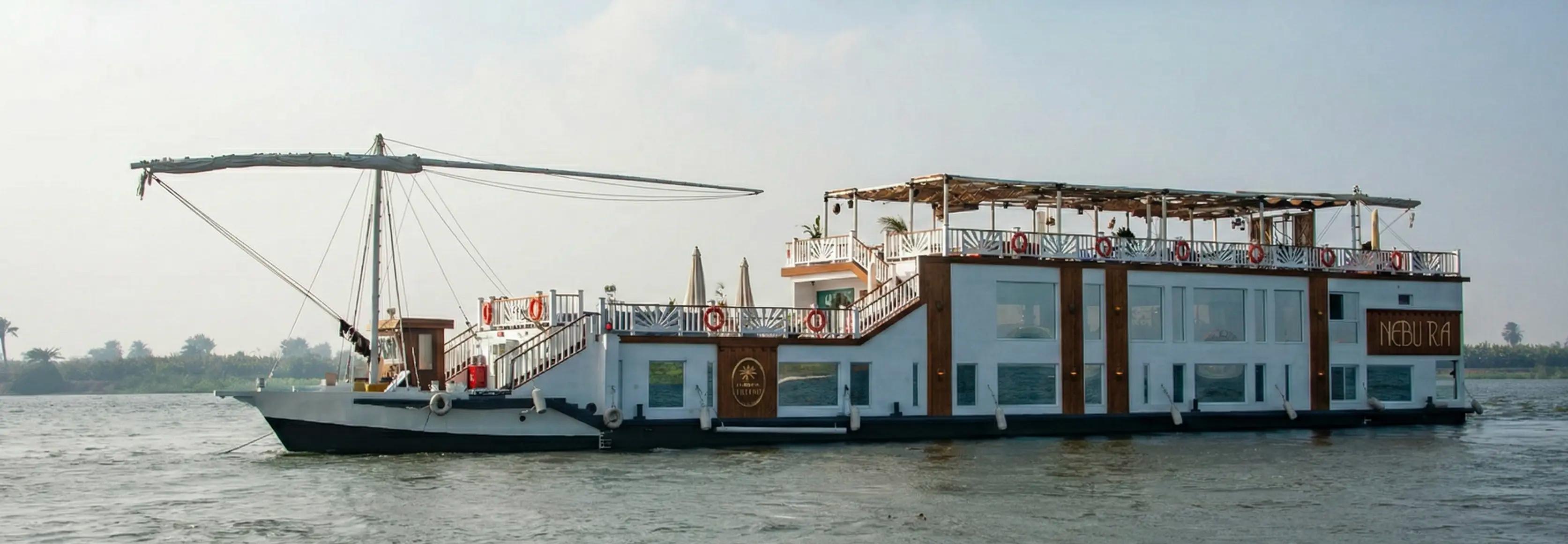 The Nebu Ra is an intimate, luxury river vessel designed to deliver a deeply immersive and unhurried journey along the Nile. With just eight accommodations; six Deluxe Cabins and two expansive Signature Suites, this three-deck boat offers an exclusive, private-yacht atmosphere where guests experience Egypt’s legendary landscapes and ancient civilizations from the comfort of a refined floating sanctuary. The concept behind Nebu Ra blends cultural depth with tranquility, balancing guided visits to iconic temples and archaeological sites with serene sailing time, allowing travelers to witness everyday life unfolding along the riverbanks.